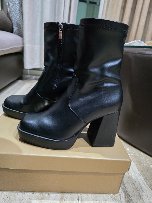 Bottines à talons hauts carrés, parfaites pour vos robes et tenues class État comme neufs, portées deux fois uniquement, sans aucun défaut Achetées à 750 dhs et je cède à 200 dhs de moins