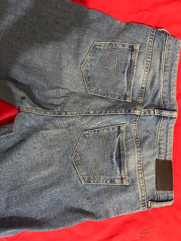 Well worn but in a good state , stretchy material, straight cut