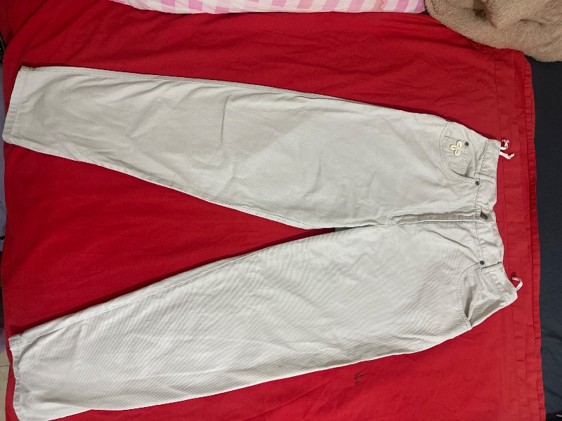 Pantalon en coton épais, coupe droite avec une légère ampleur , Taille mi-haute , État : bon (traces normales d’utilisation, pas de déchirures)