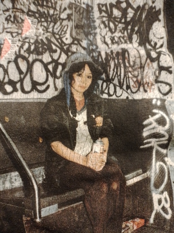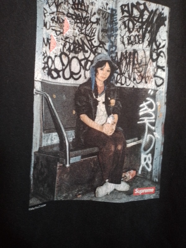 Faded Black Color. print is full but it got some cracks u can see it in the pics. the shirt got some pilling too (m7bb chwiya). Dm me on ig if u got any questions @thriftierre